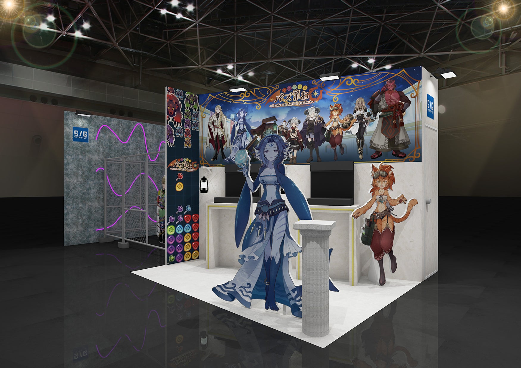 昨年のイベント初出展からグラフィックと演出をパワーアップした『パズまお』エリアでは、本作に登場する8人のキャラクターが勢ぞろいした大判パネルを展示。