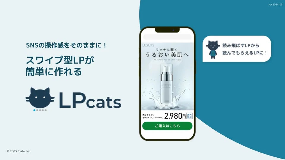 そんな中「LPcats」は縦長で読み飛ばされるLPをスワイプ型のUIにすることで「読み飛ばされない」LPを簡単に作成することができるサービスです。
