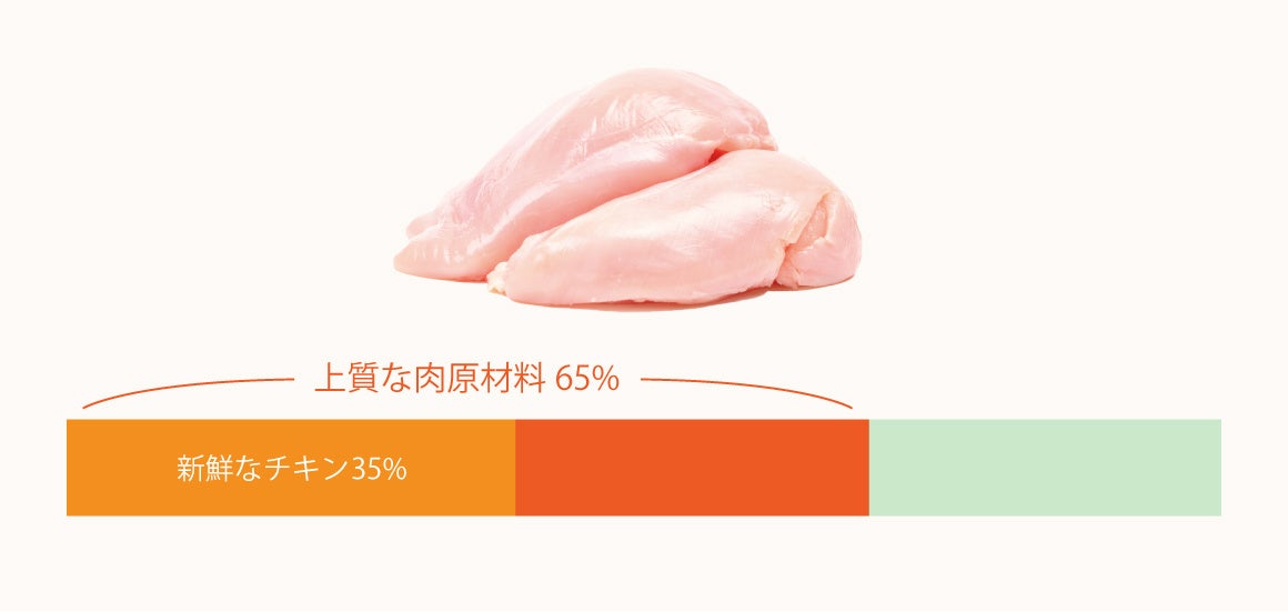 高い含有量を誇るお肉のうち35%には新鮮なチキンを使用しています。