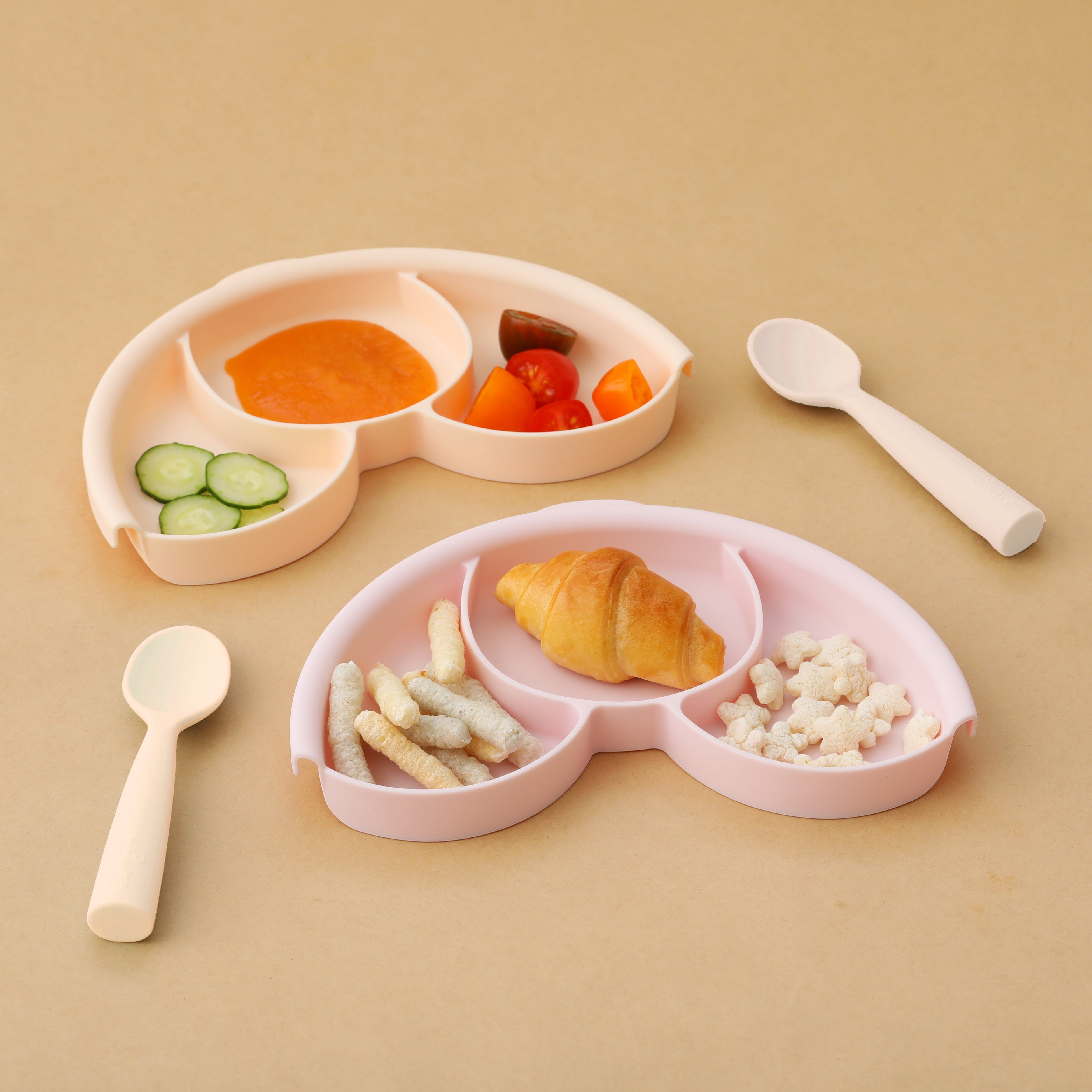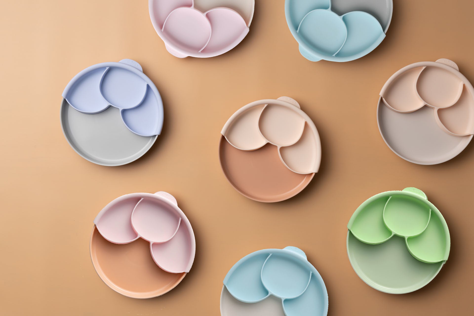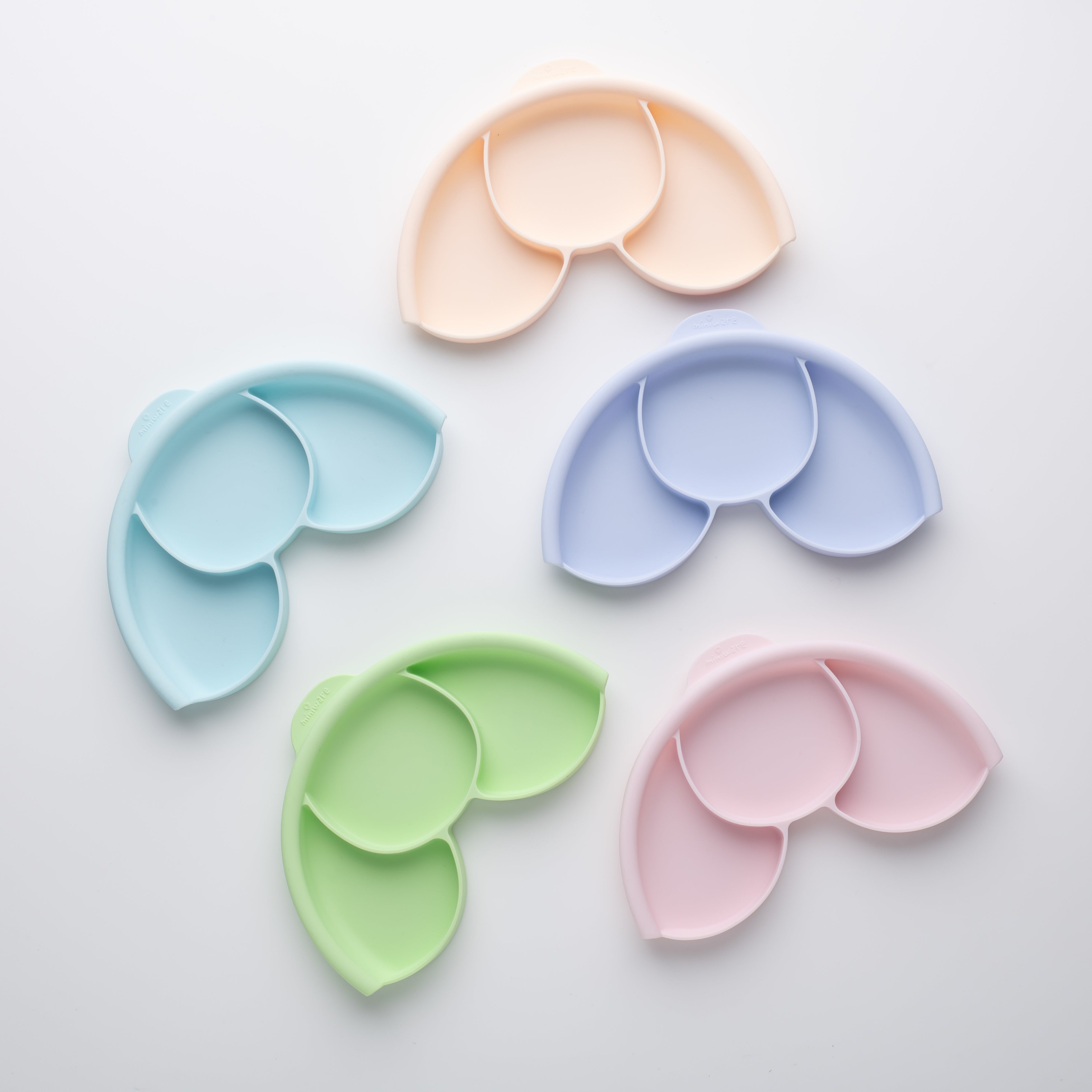 カラーミールプレートとスマートディバイダーは組み合わせて1つの食器としての使用もできます。吸盤付きで4つのスペースに分けることができ、栄養バランスを考えた食事の盛付けをサポートします。カラーの組み合わせはなんと15通り!自分好みの食器にカスタム可能です。