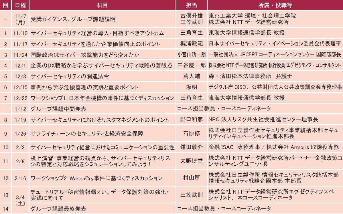 (2) サイバーセキュリティ経営のエッセンスを体系的にカバーする希少なカリキュラム