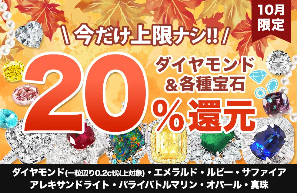 リファスタでは10月限定でダイヤを始めとする各種宝石・ブランド品の買取額が最大20%アップするキャンペーンを開催中。