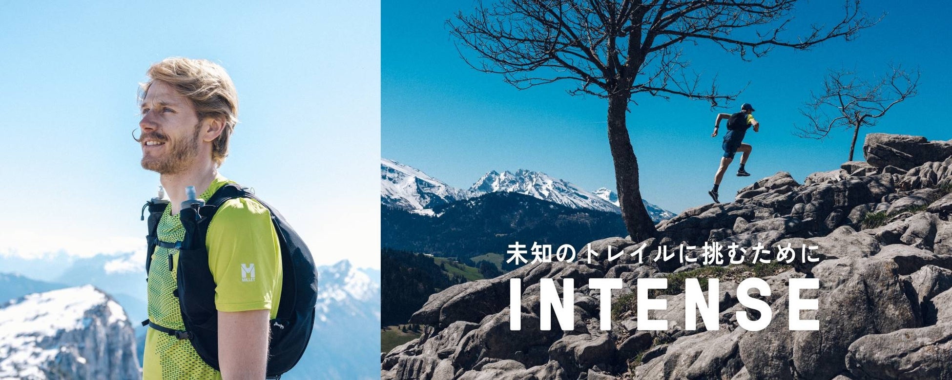 インテンスは、未知のトレイルに挑むための“適応力”をコンセプトに、トレランのプロフェッショナルチームと共同開発。フィールドテストを繰り返し、軽量性、速乾性、通気性、伸縮性、追従性などトレランに必要な各機能を徹底追求したミレーのトレランシリーズです。
