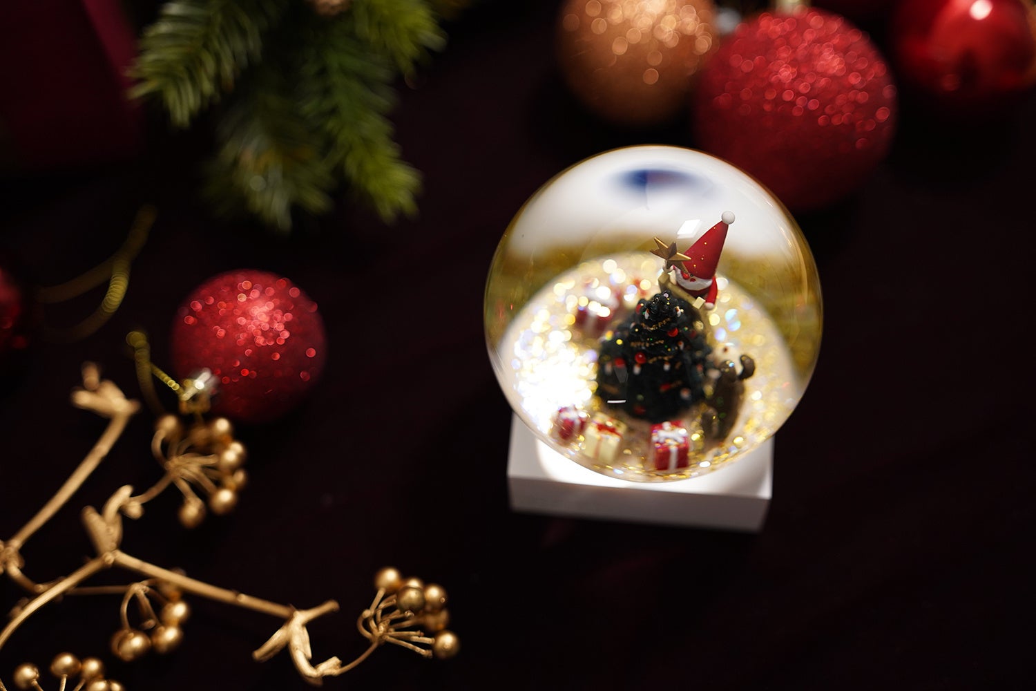 時間をかけてふわりと落ちていく細かな雪とラメの輝きが、思わず眺め続けたくなる癒しを届けてくれるスノードームです。