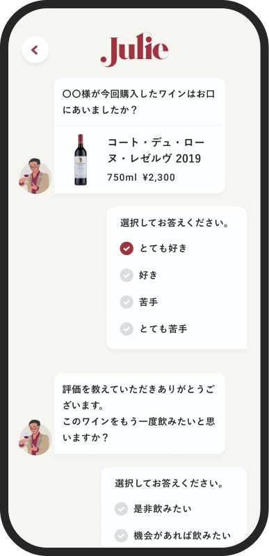 さらに、購入履歴やレビューのデータが蓄積されることで好みがアップデートされ続け、今まで出会うことがなかったワインを紹介してくれることも。多くのユーザーが抱える、数々のワイン選びにまつわる悩みを解決します。