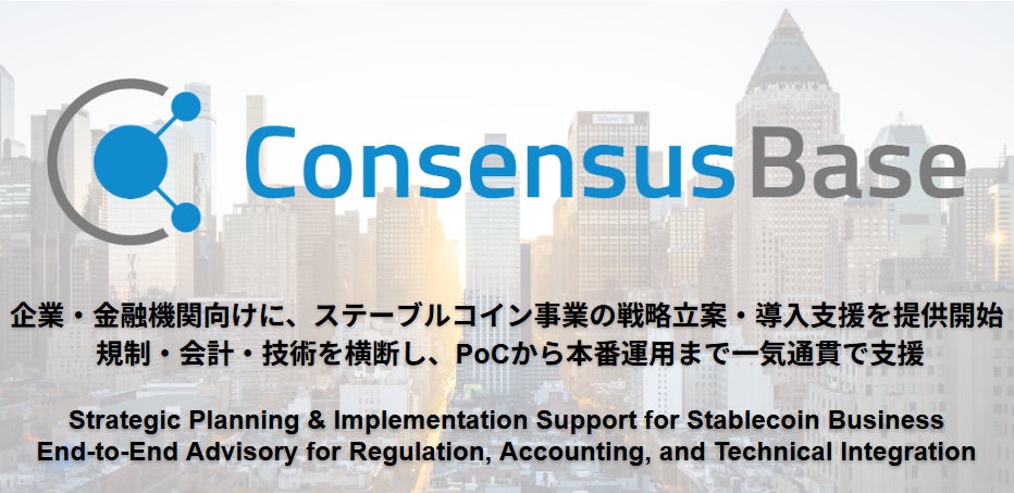 Web3/ブロックチェーンの受託開発を手掛けるコンセンサス・ベイス株式会社(本社:東京、代表:志茂 博)は、企業・金融機関に向けてステーブルコイン(以下、SC)の事業戦略立案および導入支援サービスを提供開始しました。