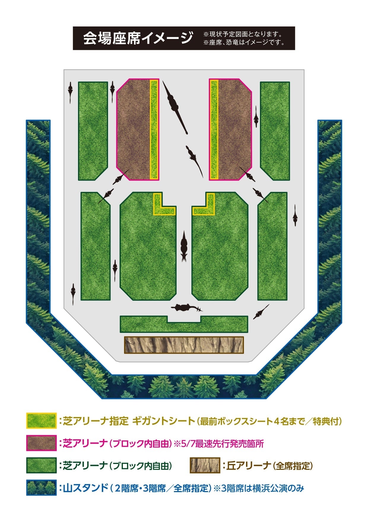 ※最速先行販発売は横浜、大阪会場の芝アリーナチケットのみで、図面上赤枠のエリア保証となります。