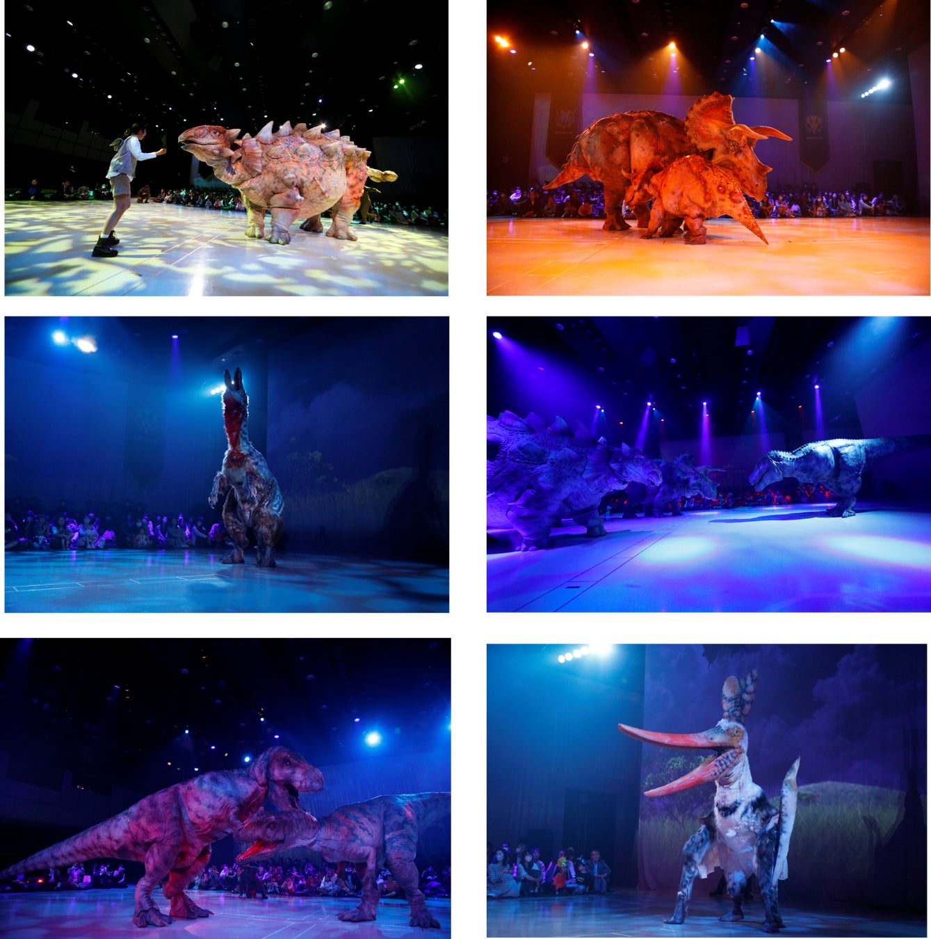 本公演は、あたかも生きているかのような恐竜が観客の目の前を自由に歩き回り、まさに恐竜の世界に自分自身が入り込んだかのような体験を味わうことができます。