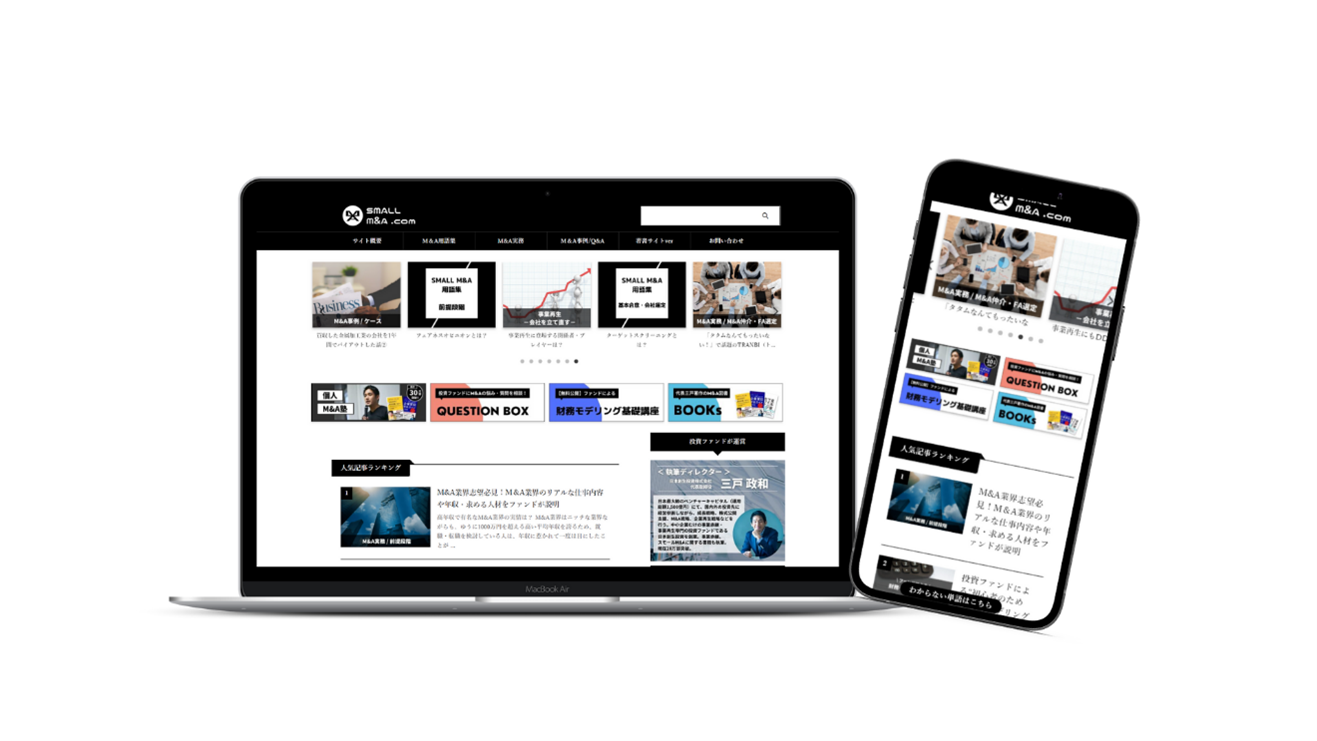 私たちは、個人M&A塾内で、また投資ファンドとして、M&A実践の場で培ってきた実務で使えるノウハウを、Webメディア「SMALL M&A .com」内にて無料で公開し、スモールM&Aや個人M&Aをさらに前へ進め、日本の中小企業や小規模事業者が有する事業承継問題を解決していく一助を担いたいと考えております。