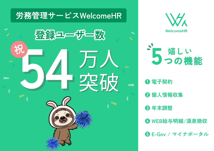 労務管理サービス「WelcomeHR」がユーザー数54万人突破!現場がより楽により早く従業員の契約更新できる新プランも誕生