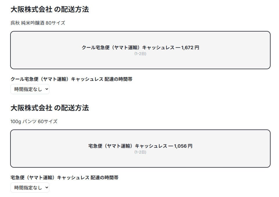 この場合には、配送方法の選択が別になります。