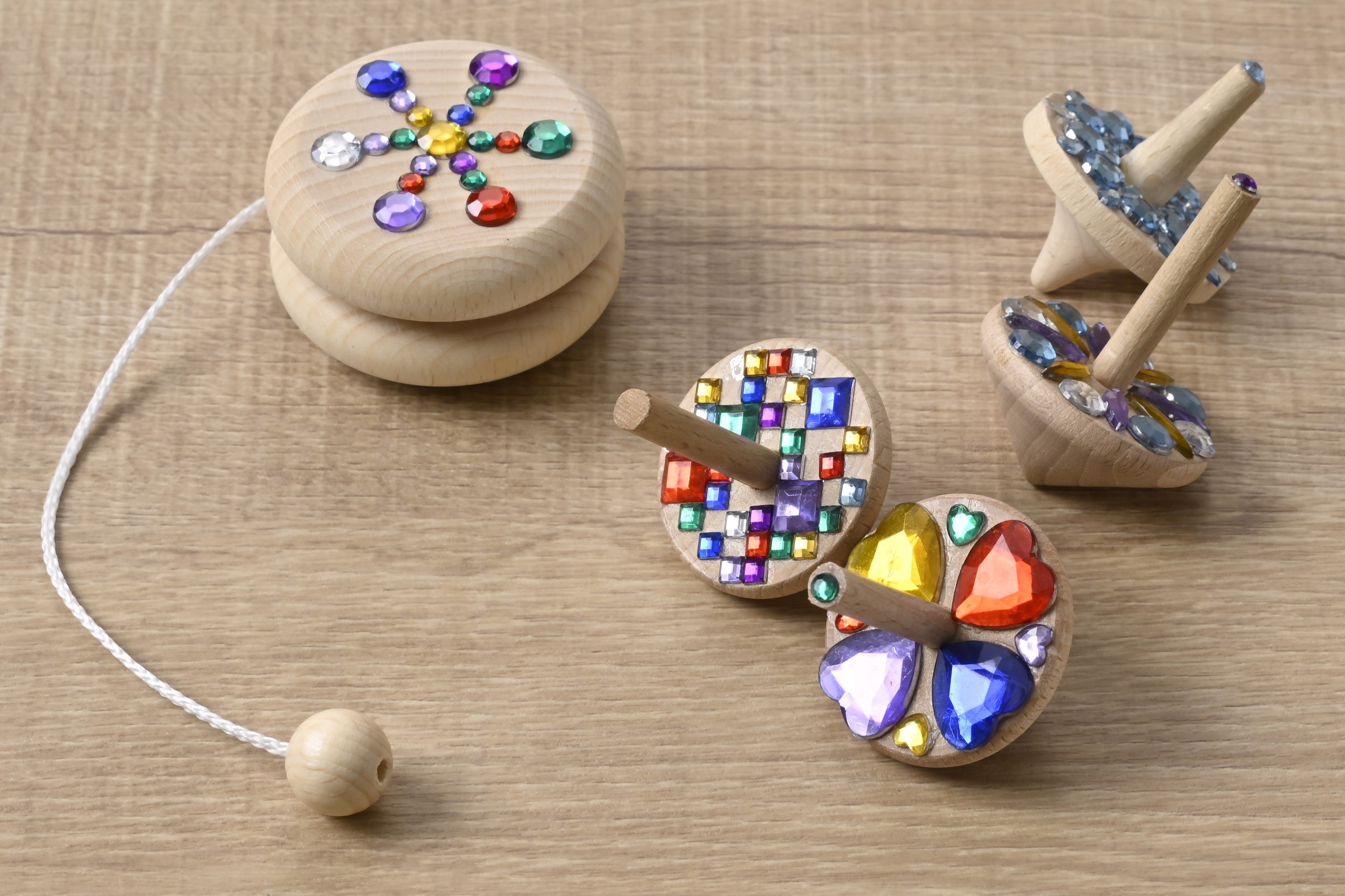 ドイツのベック社で作られている上質な木のおもちゃにキラキラ装飾を貼って自分だけのオリジナルヨーヨーをつくります!