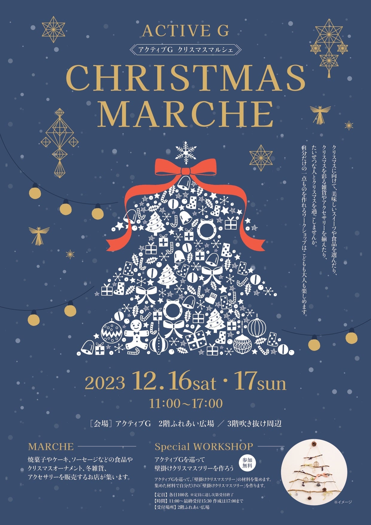 アクティブG (岐阜県岐阜市) では2023年12月16日(土)・17日(日) の2日間、クリスマスにぴったりな食品や雑貨を販売する『アクティブG クリスマスマルシェ』を開催します。