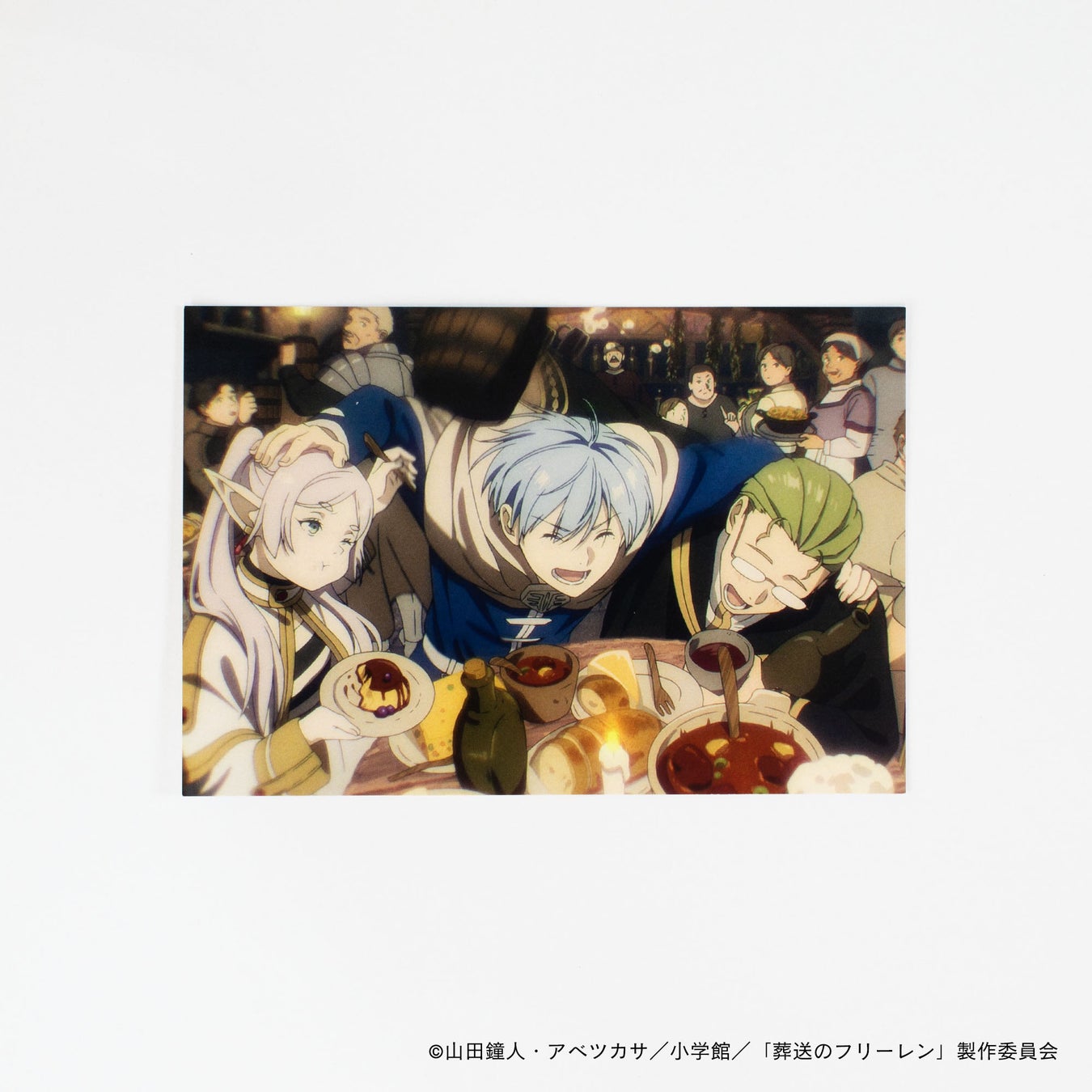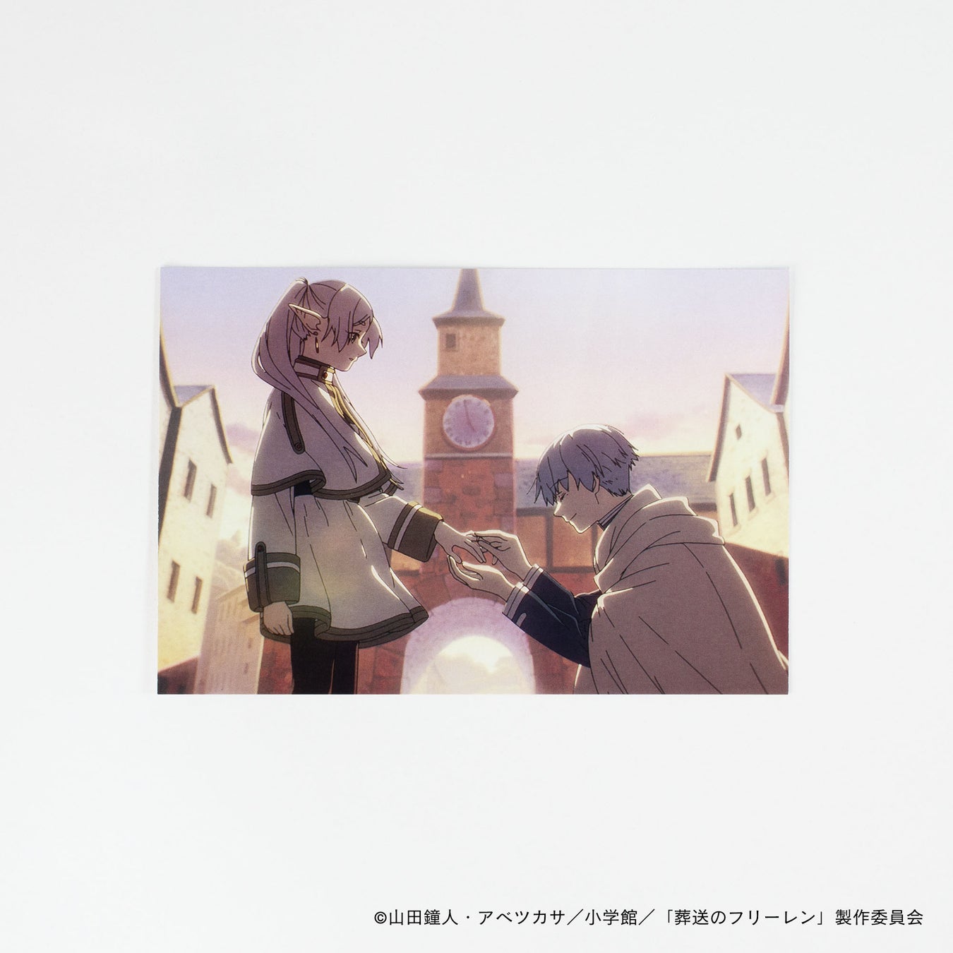 フリーレン、フェルン、シュタルク、ヒンメルが5枚組の切手に。さらにアニメ本編の名場面からチョイスしたポストカードが5枚とフリーレンと切手をモチーフにしたアクリルキーホルダーがセットになっている。アクリルキーホルダーはフリーレンの世界観に合わせて、アンティーク調を意識したデザインに仕上げている。また、切手だけでなく台紙のデザインにもアニメシーンが盛り込まれており、まさしくTVアニメ『葬送のフリーレン』づくしのグッズセットと言っても過言ではない。他にはなかなかないレアなグッズとなっているので、ファンの方にはオススメのグッズだ。価格は4,620円(税込)。
