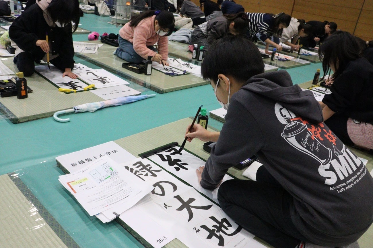 その後、杉浦さんも参加して締めの「板橋区」との揮毫に、参加の児童・生徒たちは盛大な拍手を送っていた。