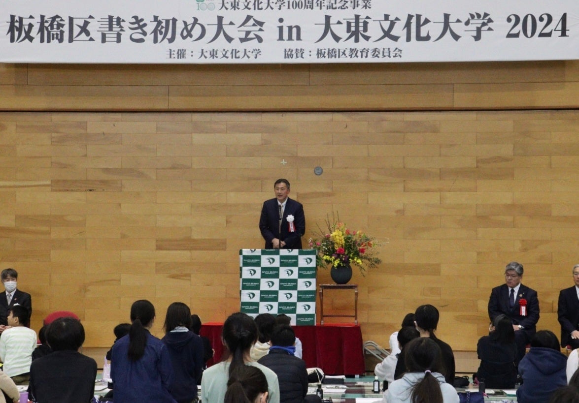 本イベント「板橋区書き初め大会in大東文化大学」は、日本の伝統文化である書道の振興と継承を目的としており、大東文化大学の100周年を記念し板橋区と官学連携事業として板橋区教育委員会協賛のもと、2022年から3年間にわたって実施し今回で最終3回目の開催となった。