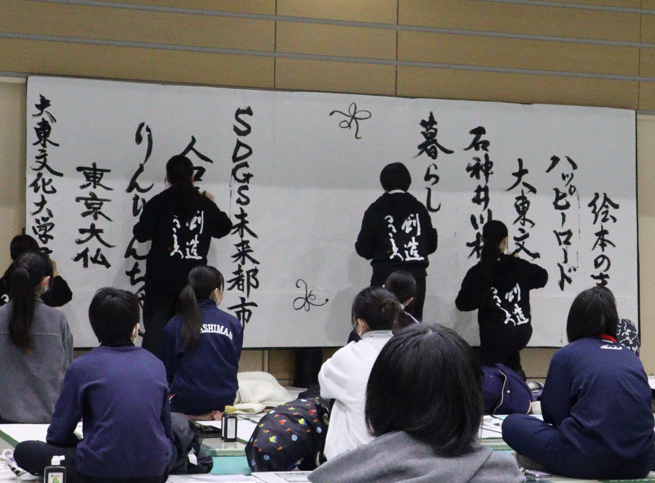 続いて、大学生による書道パフォーマンスが行われた。板橋区の魅力が大きなボードにそれぞれ書き込まれた。