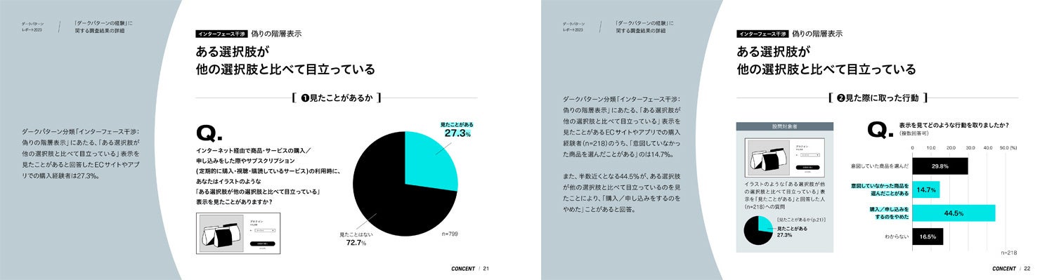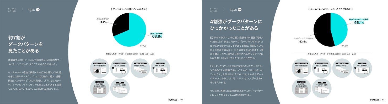 コンセント、「ダークパターンレポート2023」を公表。ECサイトやアプリでの購入経験者799人への意識調査
