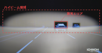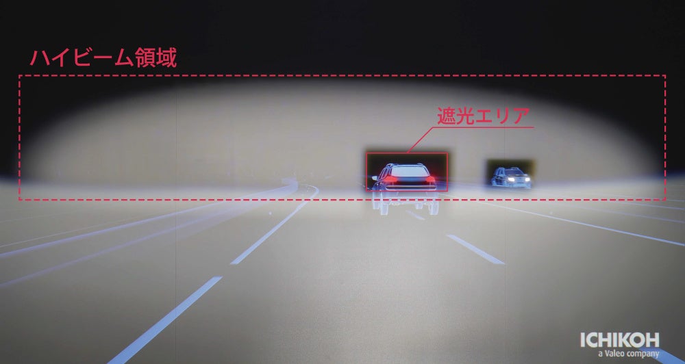 ハイビーム領域では、対向車や先行車の範囲を必要最低限のみ遮光することで、対向車や先行車への幻惑を防ぎながら、従来のハイビーム時と同等の光量を保ち運転することが可能です。