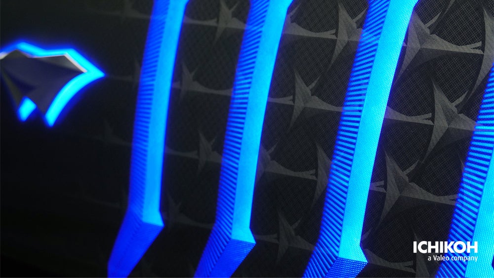 2つめの分野として、"車のフロントフェイスを進化させる、光るフロントパネル" について「e-Grill」を展示します。これは、電気自動車(EV/HEV/PHEV)のための、従来のラジエターグリルに代わる新しいライティングの商品です。