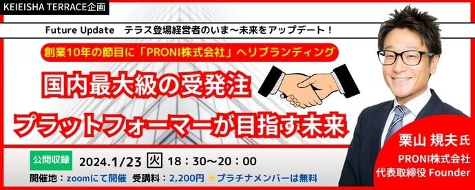「創業10年の節目に「PRONI株式会社」へリブランディング。国内最大級の受発注プラットフォーマーが目指す未来」2024年1月23日(火)18:30~開催