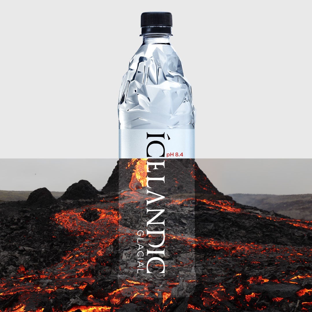 アイスランディック・グレーシャルのユニークで美しいボトルパッケージデザインは、アイスランドの壮大さを象徴しています。氷河にインスパイアされたボトルネック、水の純度がすぐわかる透き通ったボトル、そしてアイスランドの地図がロゴに深みをもたらしています。