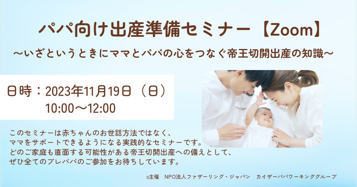 男性が帝王切開出産について学ぶ「パパ向け出産準備セミナー」開催! 11月19日(日)10:00~