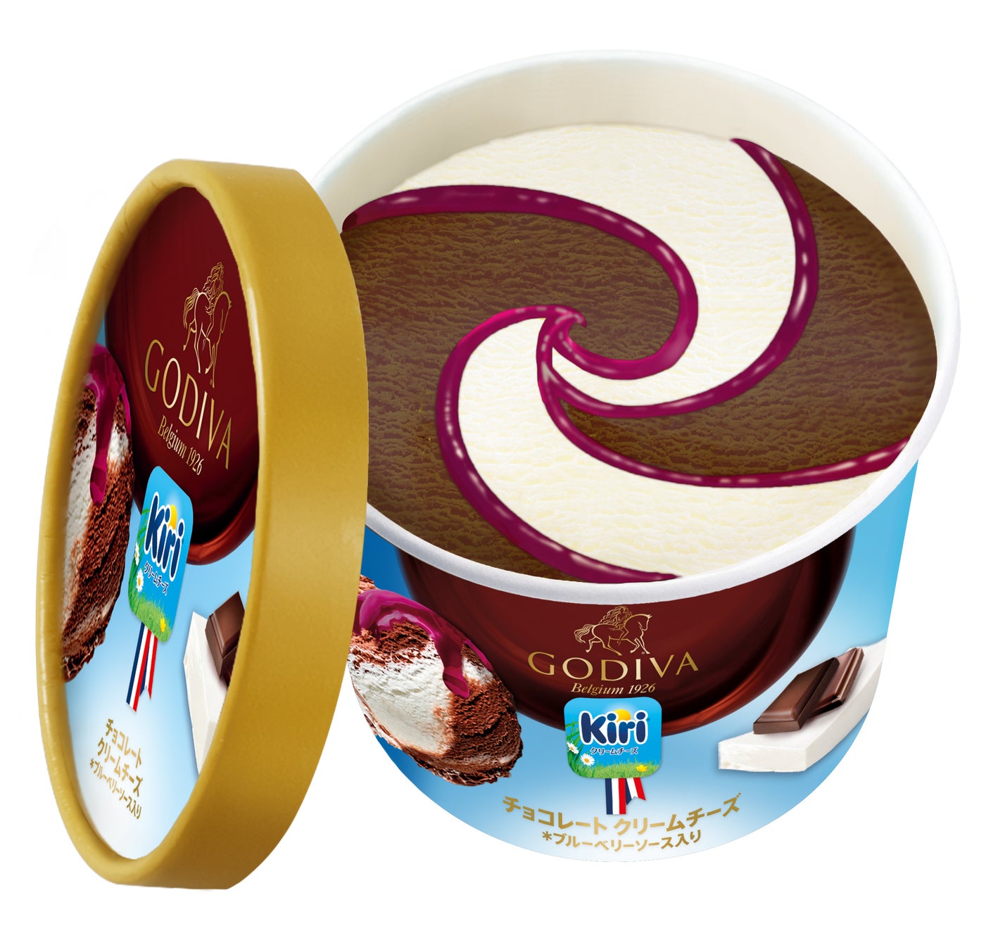 なめらかで濃厚なくちどけの「キリ」を使用したクリームチーズアイスとリッチなミルクチョコレートアイスに、甘酸っぱいブルーベリーソースを加えました。「キリ」のクリームチーズアイスとゴディバのミルクチョコレートの贅沢なハーモニーに、ブルーベリーソースが良いアクセントとなり口の中で味わいが広がります。