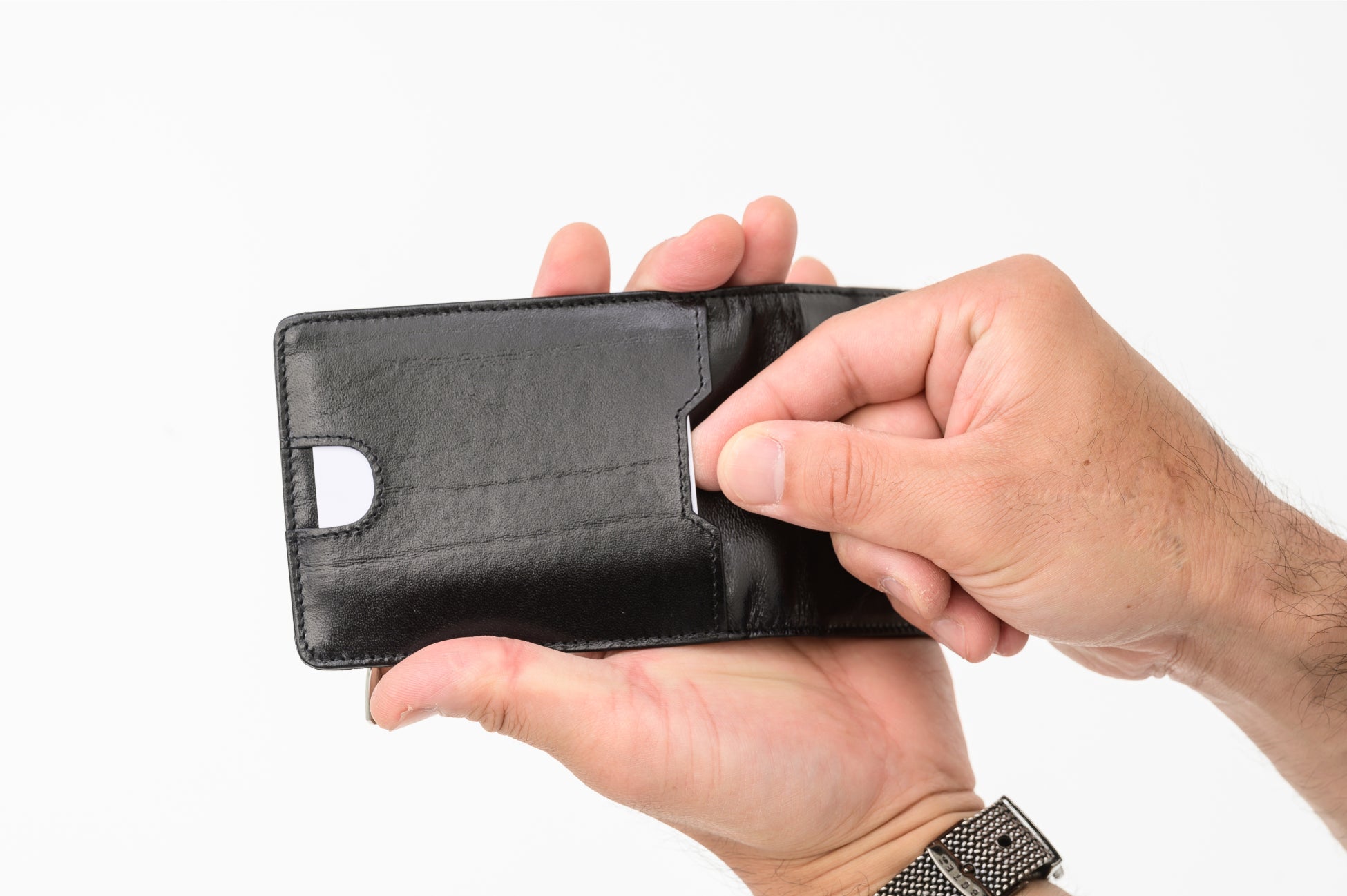 カードケースと小銭入れを兼ね揃えたマネークリップ型財布。ミニマル設計で支払いをスマートに。