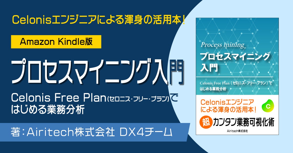 Airitechは、プロセスマイニングの入門書「プロセスマイニング入門 ~Celonis Free Planで始める業務分析~」を発売しました。Amazon Kindleからダウンロードできます。