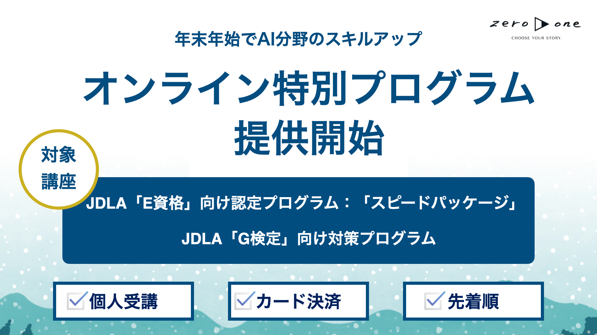 zero to one、年末年始を活用したAI分野のスキルアップを支援、JDLA「E資格」「G検定」向けオンライン特別プログラムを提供を開始