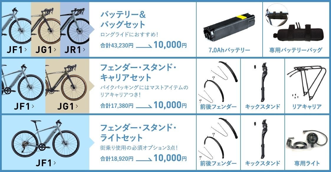 各オプションセットが+1万円(税込)で購入できるお得な「春のNEW CYCLEキャンペーン」を実施いたします。