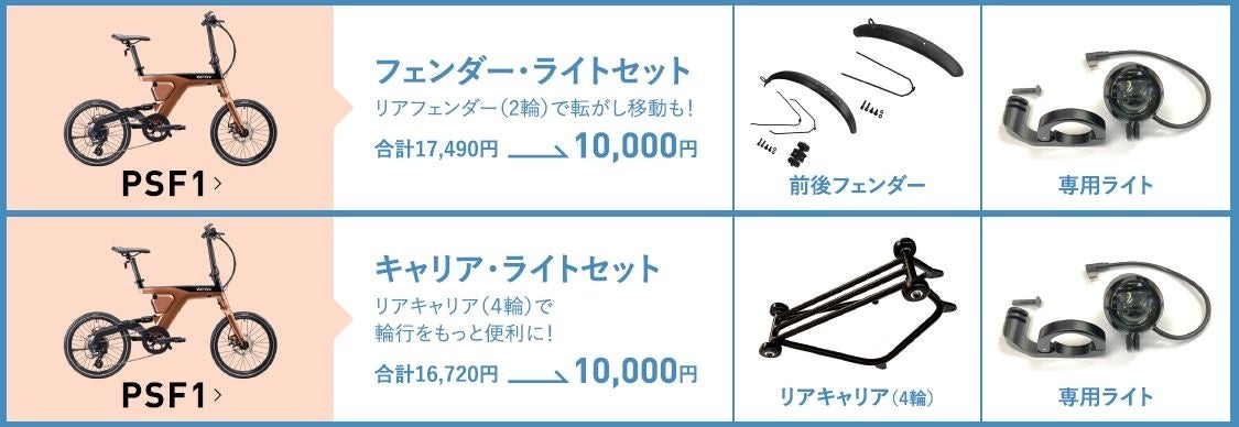- (例)PSシリーズ/前後フェンダー&専用ライト=15,180円(税込)→10,000円(税込)
