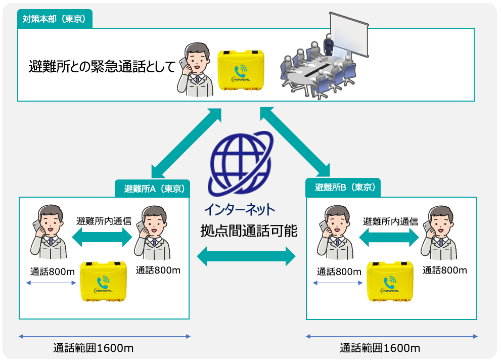 現場の方の設置負担がなきよう、持ち運び可能な防水・防塵BOXを置くだけで通話・通信が可能になり、バッテリー搭載なので電源は不要です。