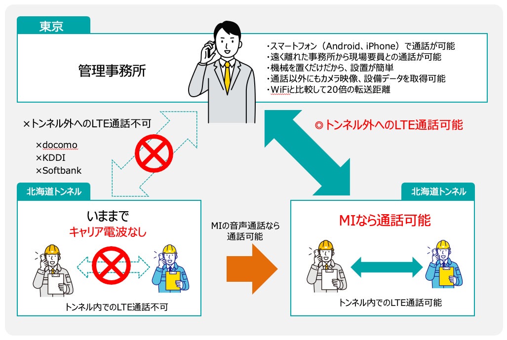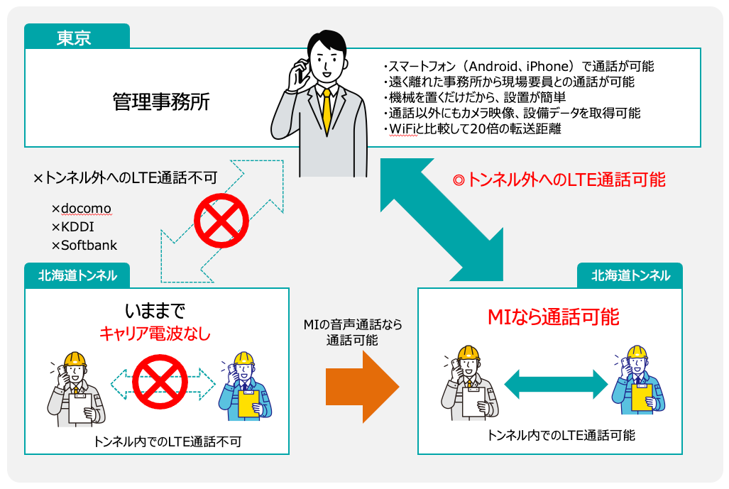 株式会社MI(本社:東京都港区/社長:石橋真吾)は2023年10月1日から、トンネル・洞道現場の設置負担をなくし、置くだけで音声通話・データ通信ができる設備「AirREAL-sXGP」を販売します。