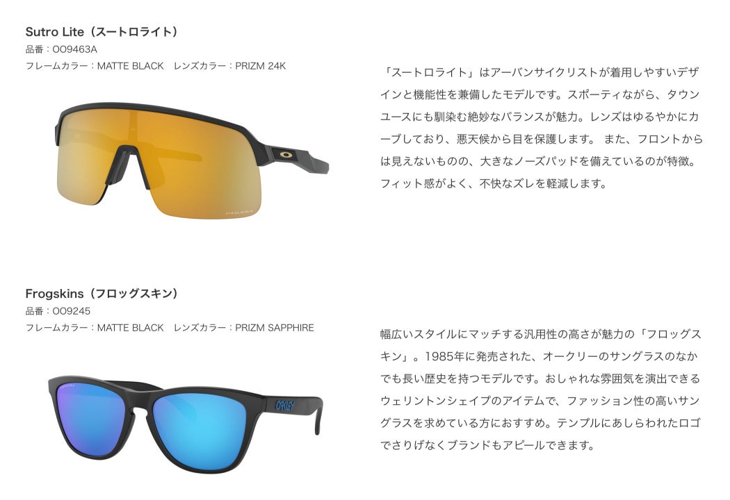 トップアスリートから一般ユーザーまで、幅広い層に愛用されている「オークリー」のサングラス。UVカット機能や軽量性、耐久性など機能面が優れているだけでなく、スタイリッシュなデザインが人気。