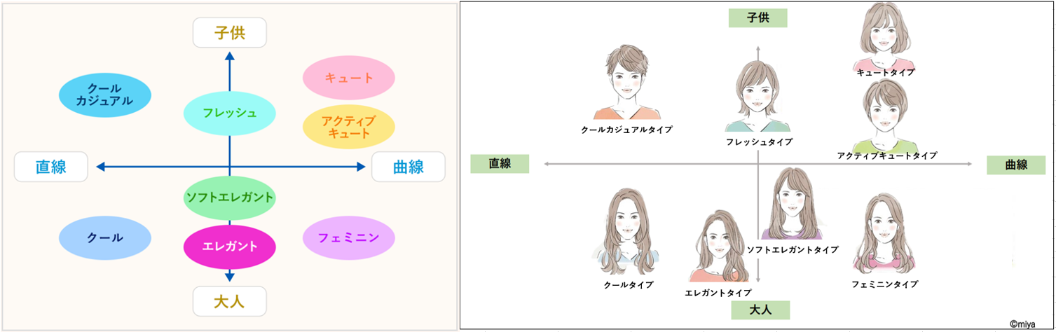 これは5万7000軒ほどと言われているコンビニエンスストアの店舗数の7倍以上の数字であり、これだけ多くのライバル店舗がある美容室では、各店が生き残りのために様々なメニューを取り入れ、差別化に力を入れています。その中でも「パーソナルカラー診断」や「顔タイプ診断®」をメニューに取り入れる美容室が近年急激に増えています。「パーソナルカラー診断」や「顔タイプ診断®」はファッションやコスメ選びのスタンダードになりつつありますが、実はヘアスタイルにもとても関係があります。パーソナルカラー診断では、似合う髪色を知ることができ、顔タイプ診断®では、似合う髪型を知ることができます。