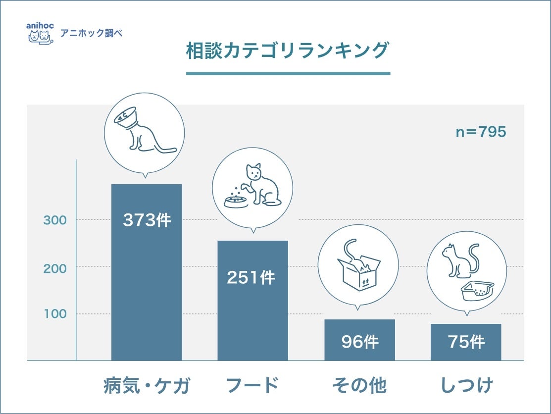 「病気・ケガ」「しつけ」「フード」「その他」という4項目に分けて集計