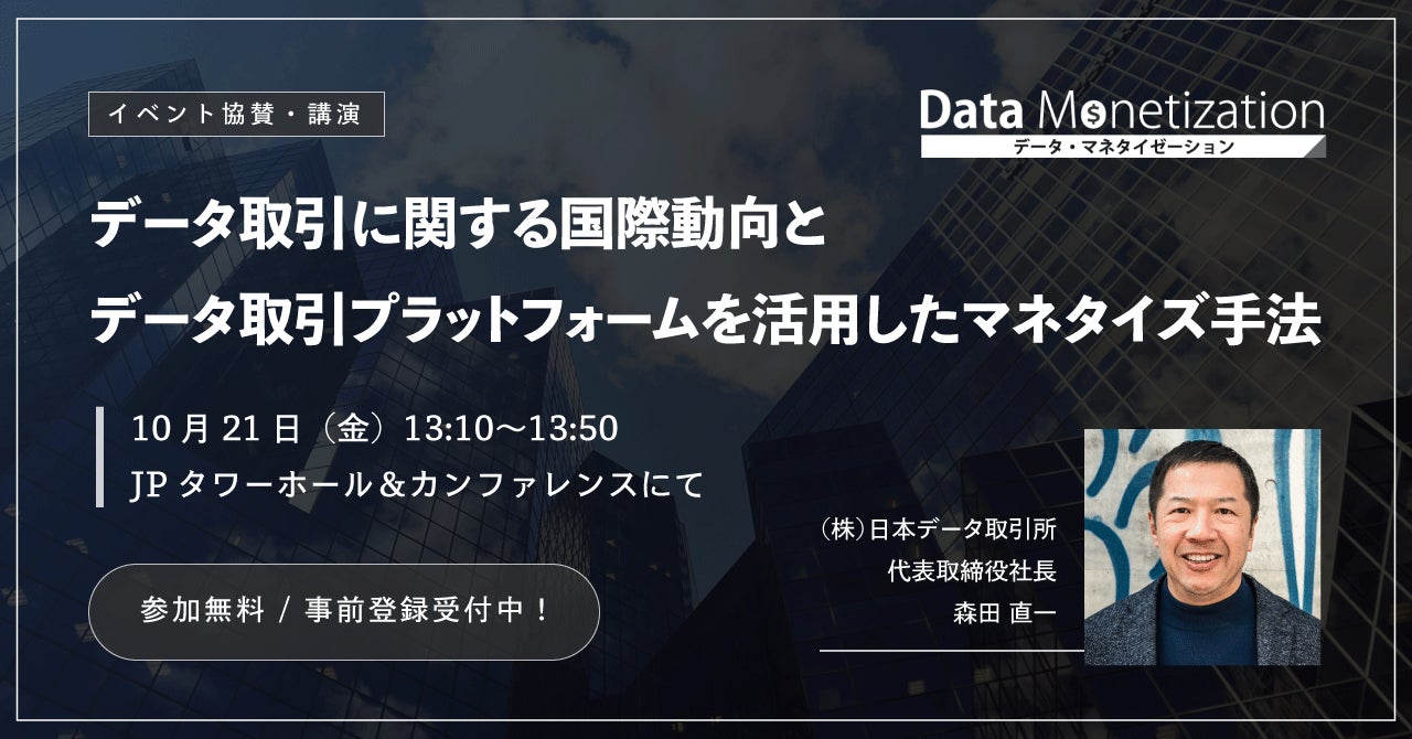 日本データ取引所、「データ・マネタイゼーション カンファレンス 2022 秋」に協賛、代表取締役・森田がセッション登壇