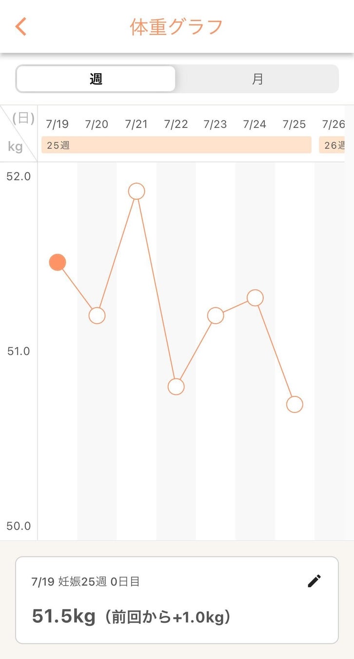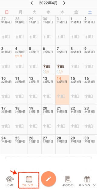 妊娠週数が一目でわかるようになりました。また、妊婦健診の日も追加でき、スケジュールをしっかりと管理することができます。