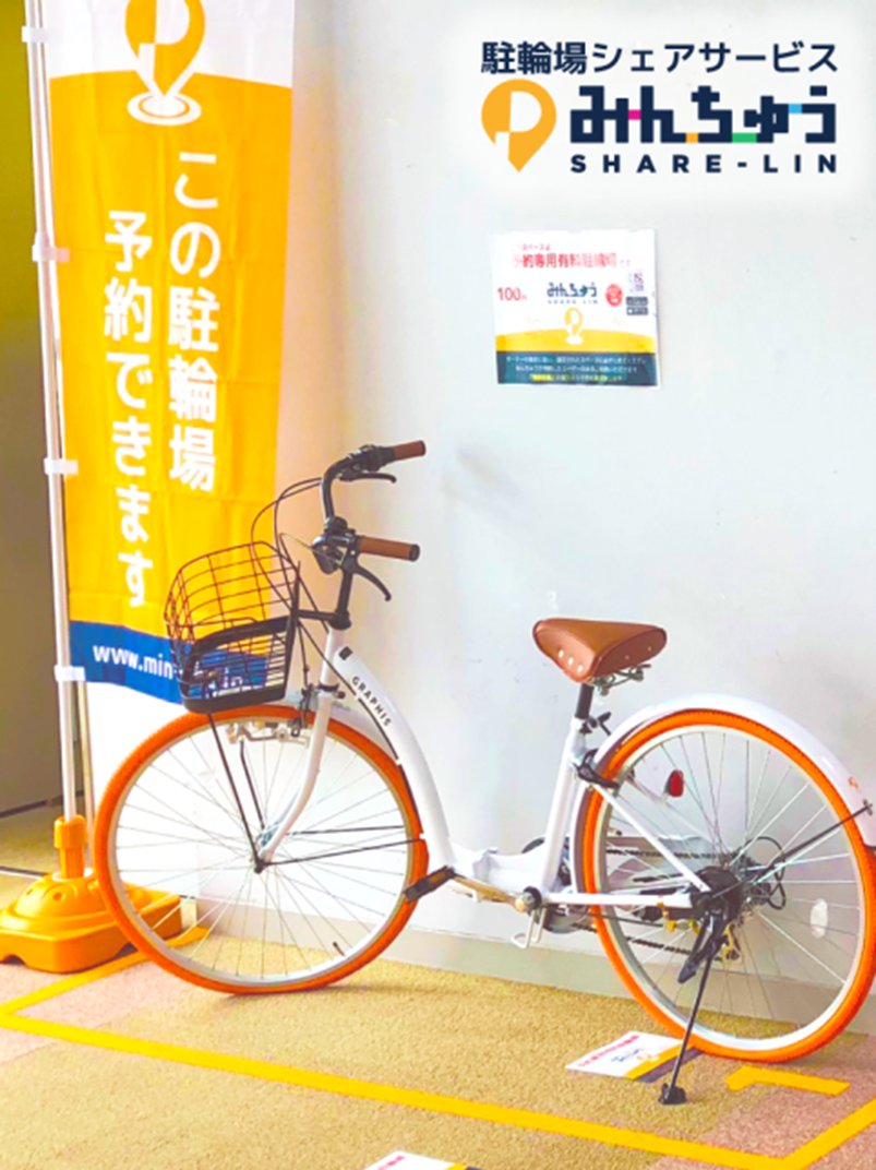 「みんちゅうSHARE-LIN」は空いている土地・スペースを誰もが貸し出すことができ、誰もが借りることのできる駐輪場のシェアサービスです。スマートフォンアプリ(Android 版・iOS 版)、WEBから貸し出し、利用予約の全てを行うことが可能です。