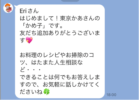 東京かあさんに登録するワーカーほぼ全てのお母さんがLINEを活用しています。「かめ子かあさん」についてはワーカーの皆様にご案内をし、ZOOMで使い方のレクチャーを行いました。反応は上々でしたので、ご活用いただき、ワーカーと利用者家庭双方にとっての「東京かあさん」サービス向上に役立て参ります。