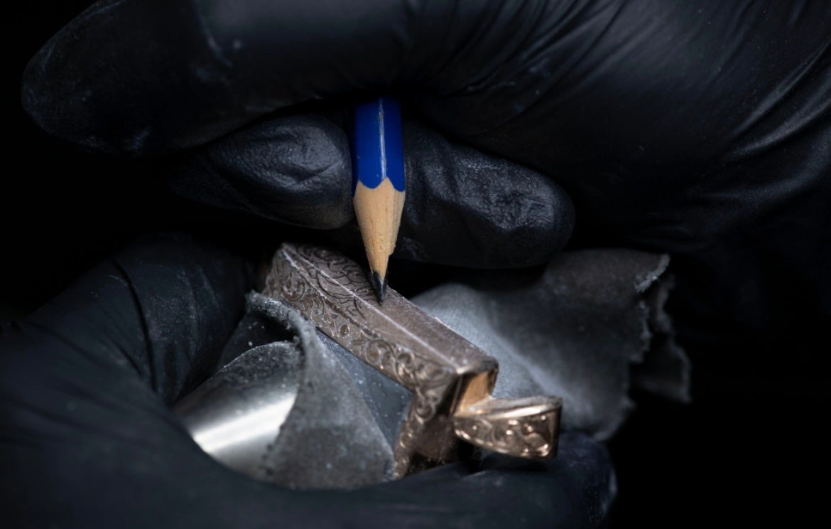 スクエアケースにチゼルド(彫刻)という意味のあるコレクション名の通り、熟練した職人が細かい部分まで妥協せずに一彫一彫作り込まれたチゼルドナポレオーネコレクション。手作業でケース周りに施された美しく繊細なバロックモチーフは、時計とアートが融合した彫刻作品のようなモデルとなります。