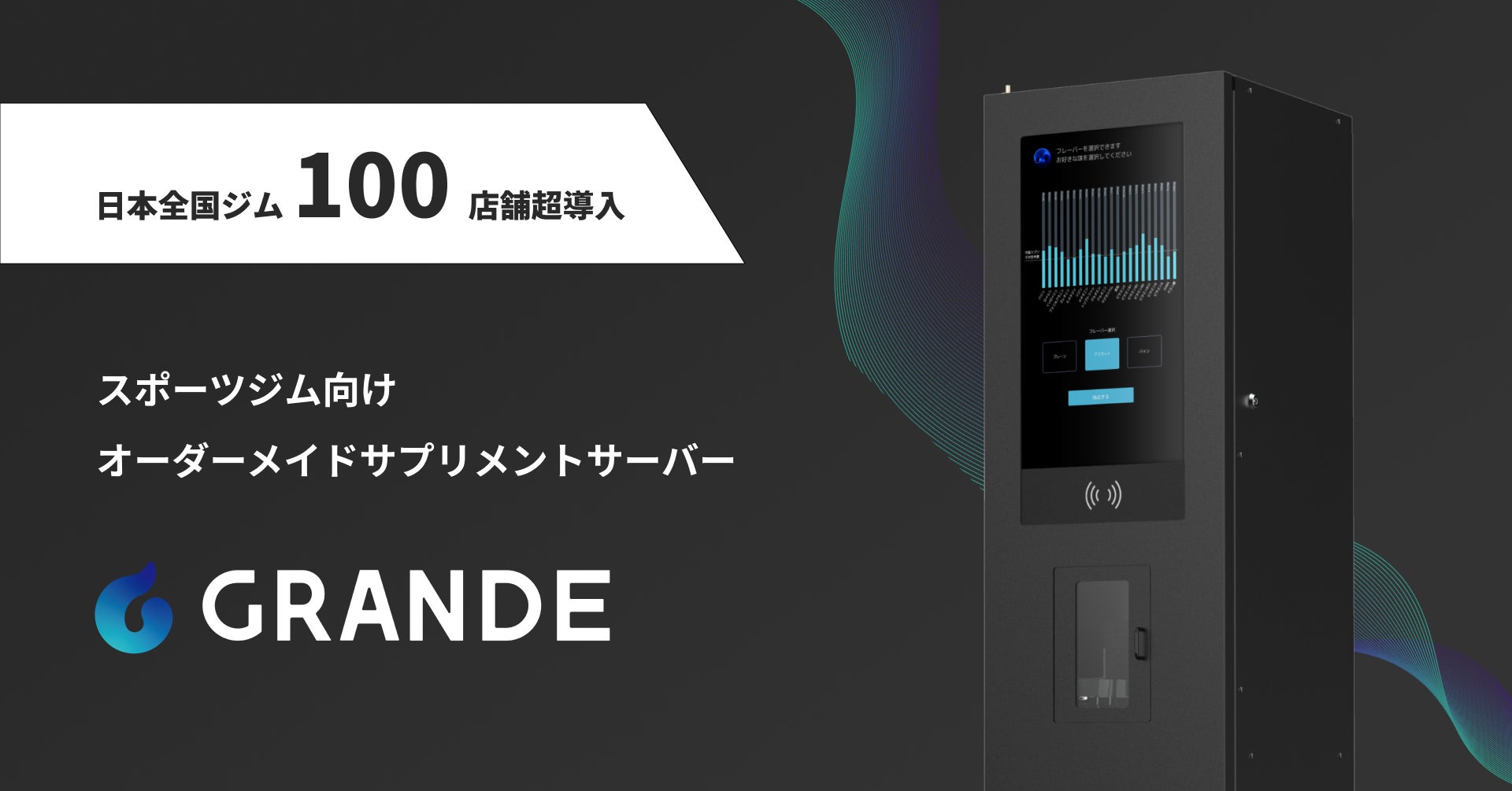 スポーツジムに特化して開発されたGRANDE (グランデ https://grande.fit)は、ジムに来館されるお客様向けのオーダーメイドサプリメントサーバーです。お客様の目標と現在の体組成に合わせ、いち早い目標達成をサポートするオーダーメイドサプリメントを自動提供します。初期費用無料、実質のランニングコストもゼロであり、ジム店舗にとって導入リスクが限りなく低いサービスでありながら、オプション収益も上がるサービスとして急速に導入拡大が進み、100店舗以上でご導入を頂いております(設置予定含む)。