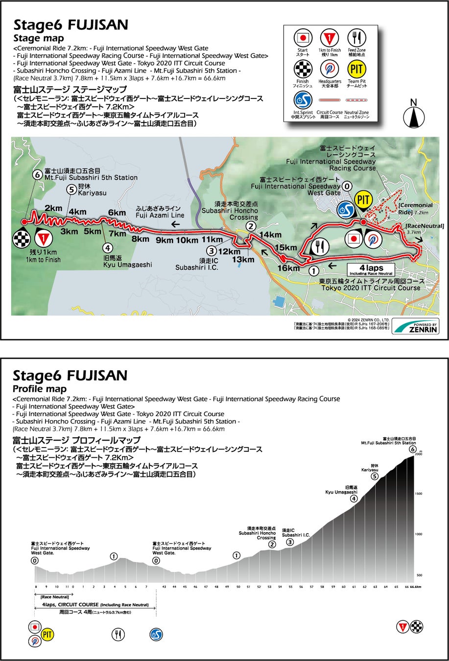 (セレモニーラン 7.2km:富士スピードウェイ西ゲート→富士スピードウェイレーシングコース→富士スピードウェイ西ゲート)富士スピードウェイ西ゲート→東京五輪タイムトライアルコース→須走本町交差点→ふじあざみライン<パレード 3.7㎞> + <7.8㎞ + 11.5㎞ x 3周 + 7.6㎞ + 16.7㎞ = 66.6㎞>