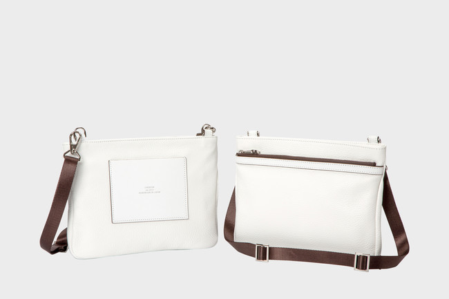 ブランド名を刻印したメタルパーツは、丁寧に高い精度で加工された高級感のあるオリジナルパーツ。 ホワイトのレザーと相まってバッグを際立たせます。ファスナーは、YKK社製でファスナーの貴婦人とも言われるEXCELLA(エクセラ:エレメントひとつひとつの全面に入念な磨きをかけた滑らかさが特徴)を使用しています。