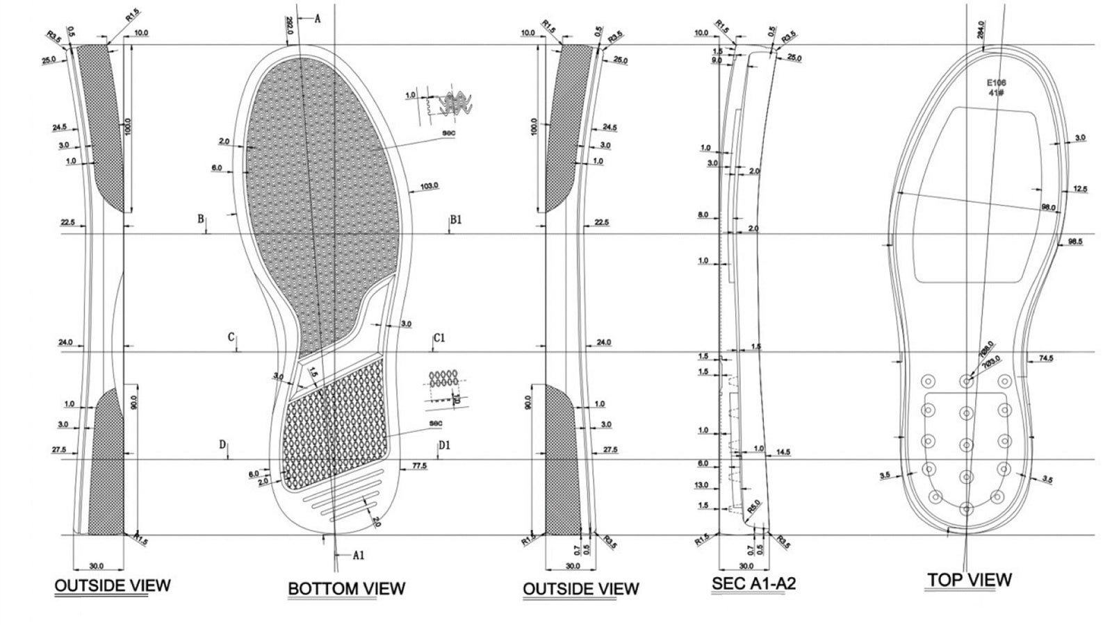 ランニングシューズによく見られる袋縫い(ストローベル製法)と釣り込み(ラスティング)のハイブリッド製法。袋縫いならでは屈曲性と柔らかな履き心地と革靴のような綺麗なつま先のラインを両立させた。