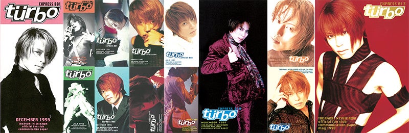 T.M.Revolutionデビュー25周年と、滋賀でのこれまでの活動を振り返る巨大年表!ファンクラブ会報誌「turbo express」150号分の歴代表紙もズラリと並びます。