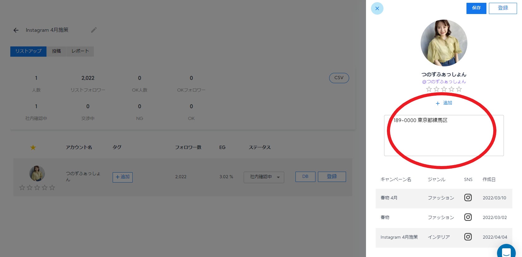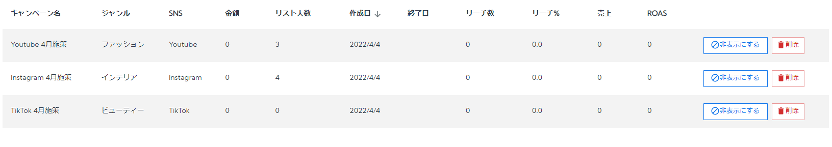 ・過去に効果が良かったインフルエンサーを直ぐに検索できるようになりたい
