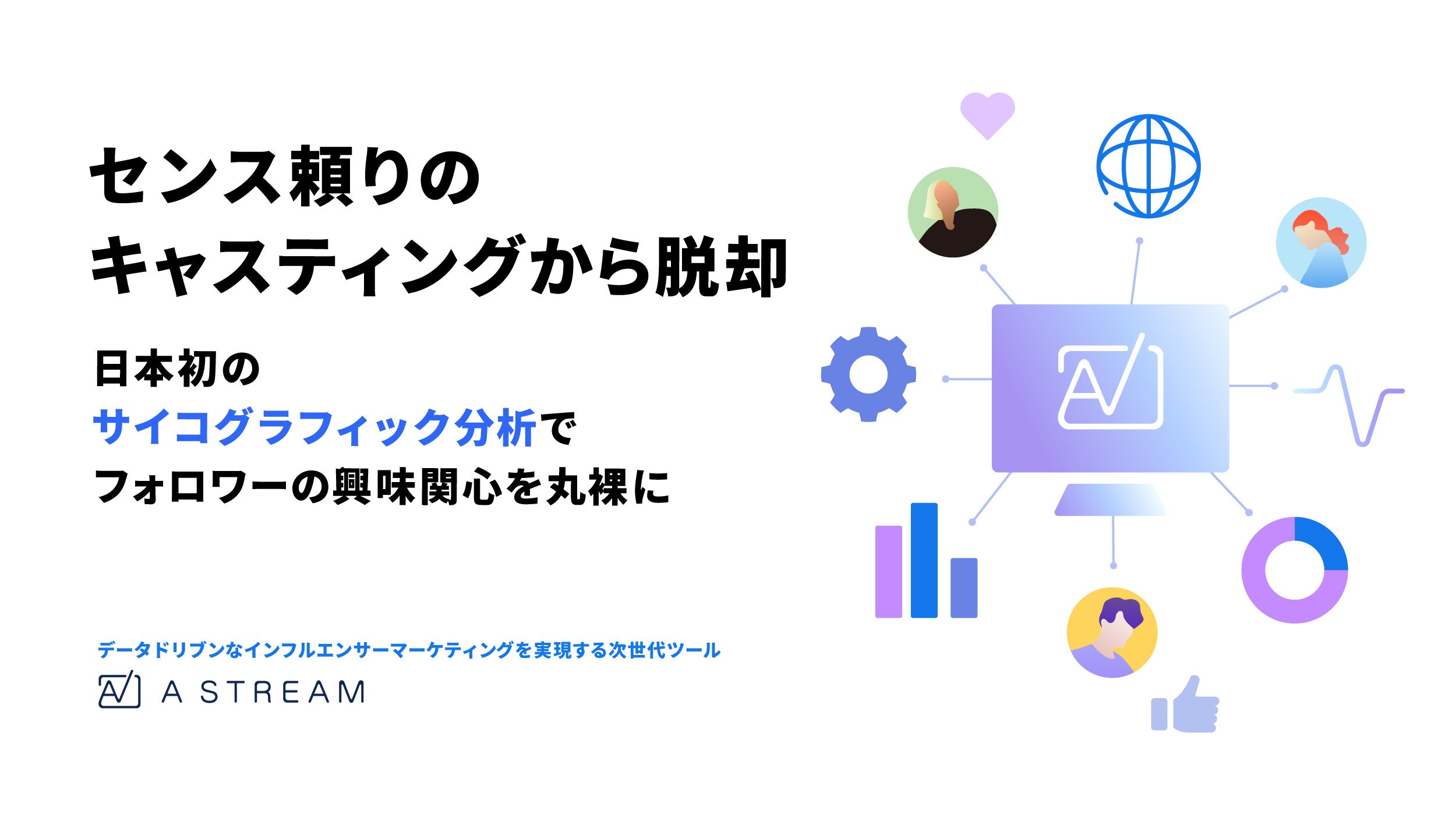 「A stream」は、2022年1月に正式ローンチ後、2ヶ月で100以上の代理店様およびメーカー様にご利用頂いております。現在期間限定で無料のトライアルアカウントを発行中です。サイコグラフィック分析によってデータドリブンのインフルエンサーマーケティングを実現します。「センスや感覚のキャスティング」から脱却のために、ぜひお試し頂ければ幸いです。